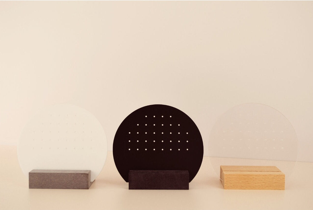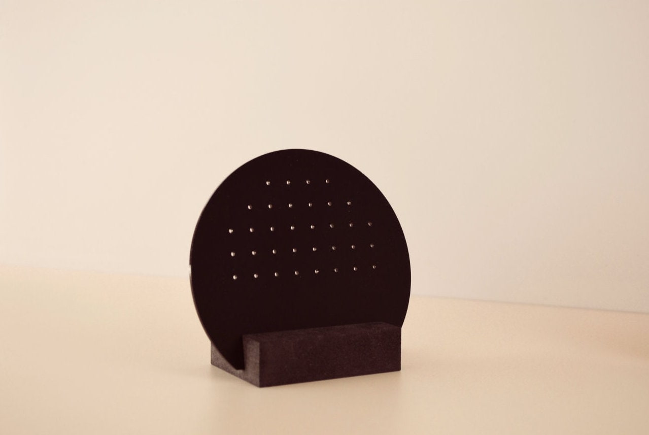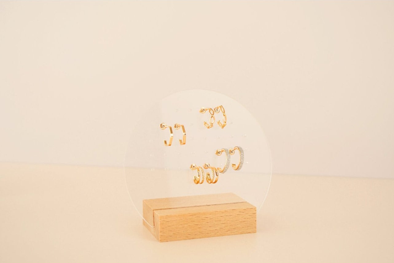 Comes with 34 holes in the Acrylic Moon stand to insert 17 pairs of earrings.